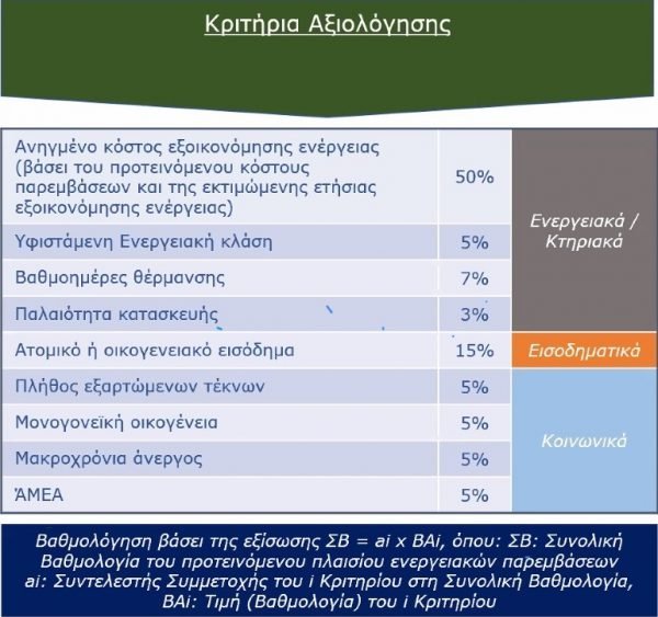 Εξοικονομώ - Κριτήρια Αξιολόγησης