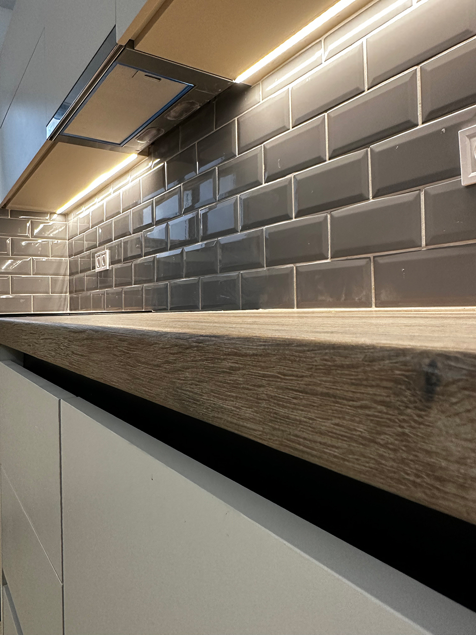 - Σχεδιασμός και κατασκευή νέας σύγχρονης κουζίνας ντουλαπιών και πάγκου.