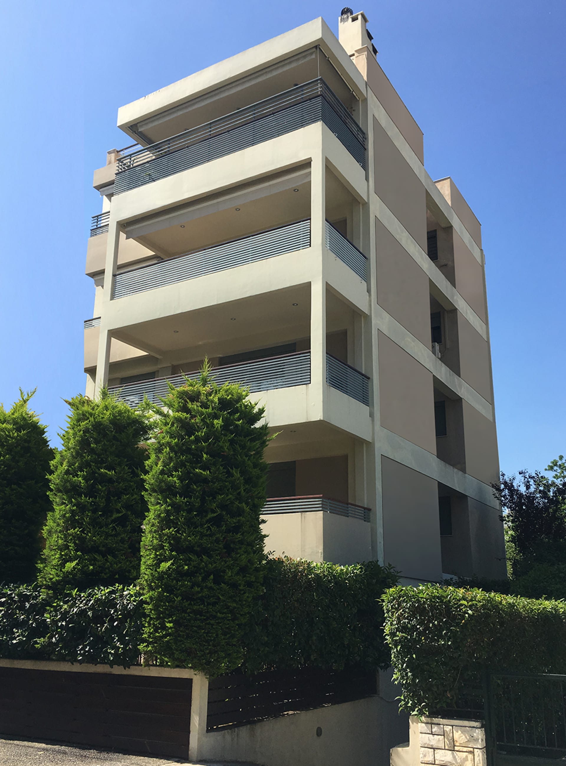 Τετραόροφη οικοδομή με piloti, υπόγειο & δώμα.